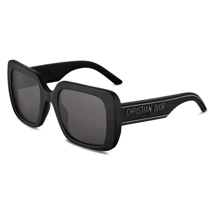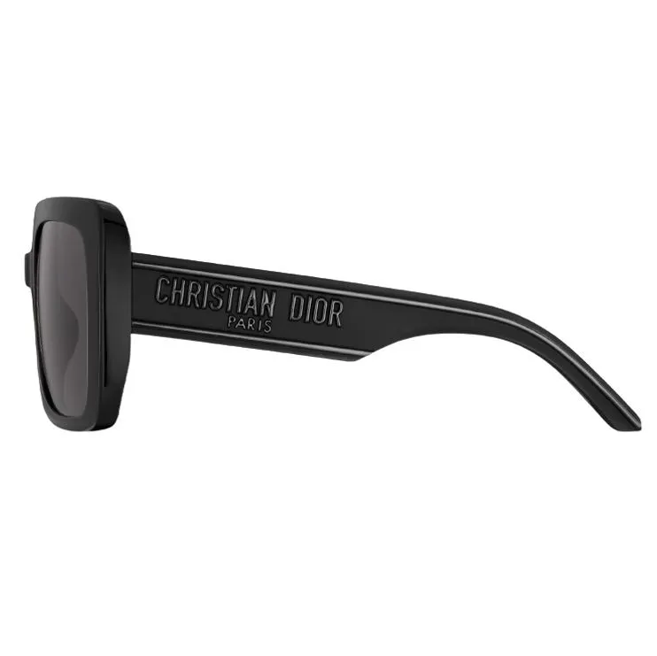 These large rectangular Wildior S3U sunglasses are characterized by their graphic and modern look. Their frame is made entirely of acetate and plays with contrasts of materials and volumes, and a CHRISTIAN DIOR logo with a matte and shiny finish adorns the temples, adding a unique, bold touch. The black acetate frame highlights the gray lenses.